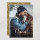 Cheers | Glitz Faux Glitter Photo Overlay New Year Holiday Card