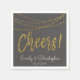 Cheers Faux Gold Foil String Lights and Charcoal Grey Wedding Napkins for a Elegant Wedding Reception or Rehearsal Dinner. The name and date can be updated on this napkin.