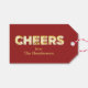 "Cheers" written in vintage marquee lights on a cranberry red background makes this the perfect gift tag for a holiday bottle of cheer for friends, family or business associates.
