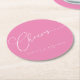 Cheers Minimal Pink White Script Custom Wedding Round Paper Coaster