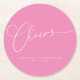 Cheers Minimalist Bright Pink and White Script Custom Wedding Round Paper Coaster