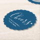 Cheers simple graphic blue and white wedding or event paper coasters. A great personalized addition to your wedding tables or for after wedding drinks. Personalize with your bride and groom's names or event details. Perfect for blue and white themed, or simple modern wedding or event. Other matching items available. Design by www.mylittleedenweddings.com on zazzle.
