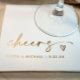 Modern and fun, these elegant “cheers” wedding napkins feature playful handwritten script with a small heart detail for a charming touch. Personalized with the bride and groom’s names and wedding date, the simple gold design blends modern typography with classic elegance—perfect for wedding receptions, cocktail hours, or engagement celebrations.