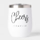 Thermal wine tumbler with black or custom colour text "Cheers" in a modern script font and your custom name below.