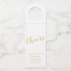 Add a personal touch to your wedding with a modern script white and gold wedding bottle hanger.