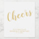 featuring title 'Cheers' in gold modern script font with name and date in modern sans serif font on white background.