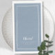 Simple, minimalist and chic "Cheers!" wedding dinner napkin features a modern design with a double framed border in crisp white on a trendy dusty blue background. Personalise names of couple and event date in modern lettering & script. These are a perfect accompaniment for any wedding party! Be sure to see the collection link on this page to view all of the matching items! Please direct questions or custom requests to invitationsuites@gmail.com.