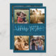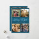 Modern New Year's photo template card featuring a typography text that says "cheers to the new year" with 4 pictures. You can add another picture and a message on the back of the card. Teal.