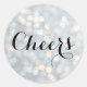 This cheers sticker is a bold ribbon font on an illustrated background of champagne bubbles, silver lights, sparkles or party balloons.... whatever you would like to interpret it as. It makes a great decoration for invitations, your party water bottles, favours, or any party accessory. Scroll down to see additional items.