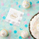 Custom foil wedding napkins feature "Cheers!" in modern script with custom monogram design that can be personalised with the bride and groom's married name and wedding date. A festive spray of bubbles, sparkles and hearts accents the typography design.