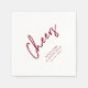 This chic custom party napkin will add stylish detail to your special day. The design features modern lettering "Cheers" with custom text. You can personalise the napkin with your name and event. More invitations and party supplies are available in my shop BaraBomDesign.