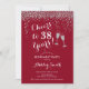 Elegant retirement party invitation for men or women. Invite card in red and faux glitter silver. Features classy typography script font, champagne glasses and confetti. Cheers to retirement! Personalise with your own details. Can be customised to show any year. Printed Zazzle invitations or instant download digital template. Perfect for a stylish retirement celebration.