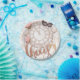 Glitzy glam for your New Year’s Eve party table! A large clock face with hands approaching midnight,, balloons, mask and champagne flutes and star motifs, with typography Cheers set to come off the page slightly In a faux glitter rose gold script.