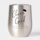 A fun thermal tumbler to celebrate the graduate. "Cheers to the Grad" is written in a modern script with a grad cap on top and you can personalise their name, class year and school in simple typography.