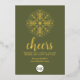 A modern look for a corporate holiday card. A huge snowflake and CHEERS in gold foil. A holiday greeting that can be used for any corporation. A classy business design with a pattern of curvy lines on the back.