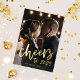 This modern and elegant happy new year card for 2023 features trendy gold foil script typography that says "cheers to 2023", and features your favourite personal photo. The back of the card is a deep violet purple.