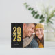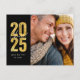 Stylish Cheers to 2025 White Handwriting Script Calligraphy and Bold Faux Gold Foil Typography on Black Modern New Year Holiday Photo Postcard.