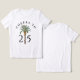 A bright Cheers to 25 tshirt for the woman turning thirty — think sunshine and tropical palm trees. This customizable birthday party gift coordinates with a matching invitation and other party supplies. Featuring a lush palm tree motif in the center bordered on each side with the birthday age that you can personalize with any age desired.