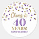 Cheers to 40 Years Birthday Gold Purple Confetti Classic Round Sticker