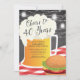 Cheers to 40 years birthday barbecue invitation featuring a beer mug & burger set on popular black chalkboard background with hanging mason jar lights