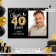 Celebrate a 40th birthday with a welcome sign printed on foam board featuring one photo, the title CHEERS TO 40 YEARS with faux metallic gold balloon numbers and modern script typography, confetti and name in your choice of background colour (shown in black). OPTIONS: The sample is shown in a 24x18" size on Value Paper (Matte); other standard and custom print sizes and paper quality, Instant Digital Download file for printing locally or transferring the design to a foam board, banner, canvas or other product options are available on the ordering page. RESIZING TIP: Choose Custom Size for even borders by changing the height and width proportionately AFTER clicking the UNLOCK icon (looks like a chain link). ASSISTANCE: For help with design modification or personalisation, colour change, resizing or transferring the design, contact the designer BEFORE ORDERING via the Zazzle Chat MESSAGE tab or email makeitaboutyoustore@gmail.com.