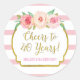 Cheers to 40 Years Birthday Pink Stripes Flowers Classic Round Sticker