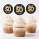 Elegant fiftieth birthday stickers featuring a stylish black background that can be changed to any colour, gold sparkly glitter, and the saying "cheers to 50 years" using fifty gold hellium balloons.