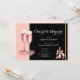Make her 50th birthday milestone party unforgettable with this stylish and festive invitation design! With a sophisticated two-tone pink & black layout, the left side features a rich pink shade adorned with golden glitters, watercolor champagne glasses, and a bottle that sets the scene for a bubbly celebration. The scripted “Cheers to 50 years” adds a touch of glamour and excitement across the card. On the right, the soft pink background offers room for all your personalized party details in a classy script and serif font pairing. The back design continues the elegant theme with a lighter pink base and shimmering glitter details.