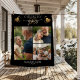 Celebrate a significant milestone with our elegant fleece blanket designed for a 50th wedding anniversary. This special golden anniversary blanket includes three cherished photos of the couple and features gold hearts set against a dramatic black background. To customize it, simply click the edit/personalize button.