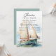 Birthday party invitation features watercolor elegant sailboat whispering on the ocean with modern script typography.