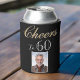 Cheers to 60 Photo 60th Birthday Can Cooler. Trendy typography in white and golden colours on a black background. Personalise the cooler with your photo and the age number.