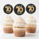 Elegant seventieth birthday stickers featuring a stylish black background that can be changed to any colour, gold sparkly glitter, and the saying "cheers to 70 years" using seventy gold hellium balloons.