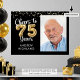 Cheers to 75 Years Birthday Photo Welcome Sign. Cheers to 75 Years Birthday Photo Welcome Sign. Celebrate a 75th birthday with a welcome sign printed on a poster print featuring one photo, the title CHEERS TO 75 YEARS with faux metallic gold balloon numbers and modern script typography, confetti and name in your choice of background colour (shown in black).OPTIONS: The sample is shown in a 24x18" size on Value Paper (Matte); other standard and custom print sizes, paper quality and framing, Instant Digital Download file for printing locally or transferring the design to a foam board, banner, canvas or other product options are available on the ordering page. RESIZING TIP: Choose Custom Size for even borders by changing the height and width proportionately AFTER clicking the UNLOCK icon (looks like a chain link). ASSISTANCE: For help with design modification or personalisation, colour change, resizing or transferring the design, contact the designer BEFORE ORDERING via the Zazzle Chat MESSAGE tab or email makeitaboutyoustore@gmail.com.