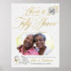The golden couple's photo is set against a soft faded diagonal pinstripe in white and light silver with faux gold leaf typography and rose accents. Names and date of wedding anniversary is editable to create a lovely poster for framing or easel at the celebration. Please look for the Cheers to Fifty Years anniversary collection for coordinating guest book and invitations; as well as party items.