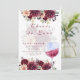 A romantic and wine-inspired bridal shower design featuring lush burgundy florals, soft watercolor details, and a charming wine-glass illustration. The warm palette and elegant script create a feminine, celebratory mood perfect for brides who want a stylish, intimate gathering. Fully customizable, this layout effortlessly suits vineyard showers, wine-themed parties, or any sophisticated pre-wedding celebration.