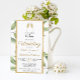 This chic and elegant Cheers to Love Wedding invitation design features two champagne glass in a toast to love. There is a pretty gold frame with green botanical accents that surround the text on the front of this modern and pretty gold botanical invite. Personalise this simple wedding card with your names and the date of your event.