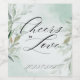 Celebrate your special day with this elegant wedding wine label featuring the phrase "Cheers to Love" and a soft watercolor greenery design. Perfect for wedding table decor, guest favours, or personalised wine gifts.