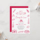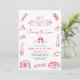 The script typography used for “Cheers to Love” creates a romantic and eye-catching focal point. The event details are presented in a clear sans-serif font for balance and readability. The white background enhances the bold red artwork, creating a fresh and stylish look. This invitation is ideal for an Italian-themed couple shower, engagement celebration, wine night party, or modern retro gathering. It combines charm, warmth, and simplicity while keeping the design clean and organized.