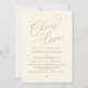 Announce your happily ever after in style with our beautiful gorgeous modern contemporary zen yellow gold theme design (Cheers to love) couples shower celebration invitation card. With its sophisticated yet playful design, this invitation is sure to set the tone for an unforgettable event. The invitation card features modern minimalist romantic script design, adding a touch of timeless elegance to your celebration. Designed by TeeshaDerrick