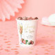 Strawberry and champagne paper cups, lettered with Cheers to Love in casually elegant gold calligraphy. Watercolor design with a glass of champagne, strawberries and strawberry flower. The template is ready for you to personalise for any occasion, such as bridal shower, couples shower, anniversary, engagement etc.