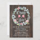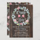 Charming "Cheers to Love" wine tasting bridal shower with floral wreath, wine glasses with heart shaped wine and soft pale pastel colours on a rustic wood plank background.