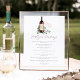 Charming botanical wine tasting menu sign displays your wine selections topped by a bottle of burgundy red wine with the couple's initials inscribed, and two wine glasses on a bed of green watercolor eucalyptus leaves and foliage. Designed to match our Cheers to Love invitation collection.