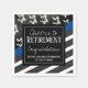 Unique and fun personalised retirement "cheers to retirement" blue line design police officer themed retirement party supplies. All text is adjustable. fun stylised stars on a faux wood textured background.