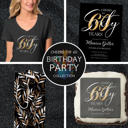 Celebrate a milestone with this elegant Cheers to Sixty 60th Black Gold Glitter Birthday design. Perfect for a stylish chic sixtieth birthday party, featuring regal calligraphy script in black and gold for a truly sophisticated touch.