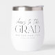 Celebrate the grad with this personalised wine tumbler! The graduation wine tumbler features the phrase "Cheers to the Grad" in a mixed black typography style of script and black serif lettering. Personalise the cheers to the grad wine tumbler with the graduate's name and class year. This custom graduation wine tumbler is perfect to give to the high school or college graduate(s) in your life and makes a great personalised graduation party favour!