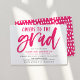 Invite guests to your graduation party with our stylish & trendy Cheers to the Grad graduation party invites! The modern graduation party invites feature the phrase "Cheers to the grad" in a hot pink, hand-lettered brush script with your party details displayed below. The graduation party invitations reverse to a hot pink and white abstract dot pattern. Perfect for both high school and college graduation parties!