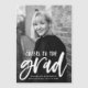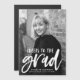 Stylish, modern graduation announcement magnet featuring the graduate's vertical photo with "Cheers to the grad" in a white, hand-lettered brush script. Personalize the front of the magnetic graduation announcement by adding the graduate's name, school name, and graduation year.