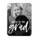 Stylish, modern graduation magnet featuring the graduate's vertical photo with "Cheers to the grad" in a white, hand-lettered brush script. Personalize the photo graduation magnet by adding the graduate's name, school name, and graduation year.