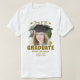 Elegant graduation celebration t-shirt featuring a graduates mortarboard, a photo of your son or daughter, the saying "Cheers to the Graduate", their name, place of study, and class year.