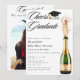Cheers to the Graduate Gold and Green Champagne Toast Graduation Party Announcement - A modern and unique personalised graduation party invite announcement. Featuring a festive champagne bottle popping. The phrase "Cheers to the Grad" is written in script calligraphy typography. Edit this college or university graduation invitation template with your own event details. Personalise this invitation even further by adding a photo of the graduate on the back. Also available as an instant digital download, perfect for sending via text, email or social media.
